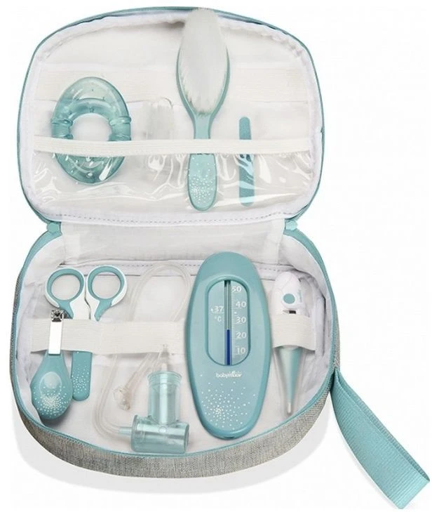 Deze mooie set van Babymoov bevat een digitale thermometer met flexibele tip, een neuspompje, een schaartje, nagelknipper, nagelvijl, badthermometer, zachte borstel, bijtring en een vingertandenborstel.