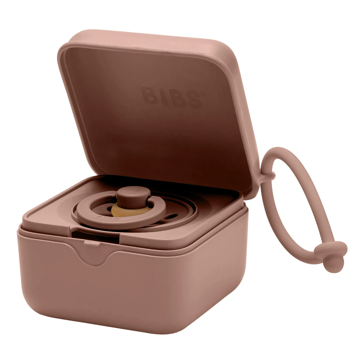 Je draagt het doosje gemakkelijk overal naartoe dankzij de handige siliconen draagband. Het doosje is geschikt voor alle spenen van het merk BIBS.