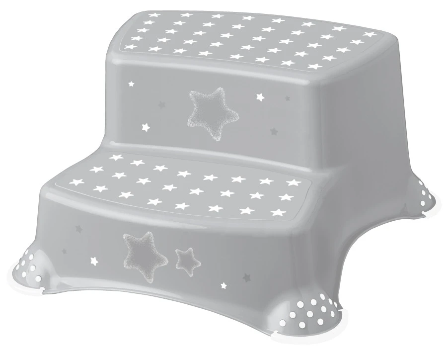Het opstapje heeft een mooie grijze kleur en is voorzien van leuke print met sterren. De nieuwe technologie van overprint (IML) voorkomt dat de afbeelding vervaagt of loslaat.